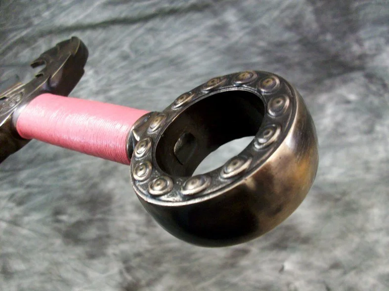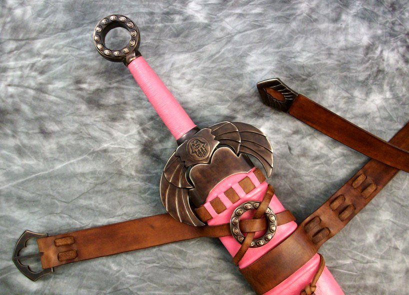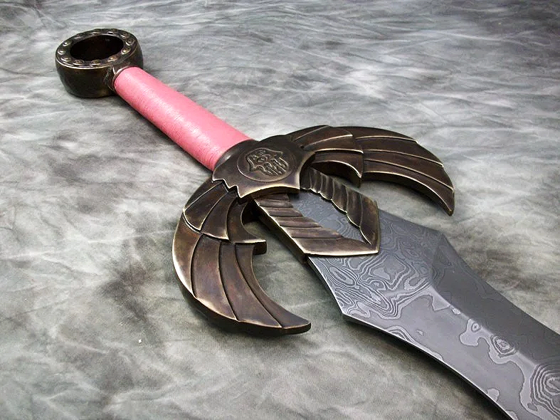 This sword is not available but a similar sword could be commissioned. The cost for a similar sword with pattern welded blade would be in the $4000 - $4500 range. A similar scabbard with integrated belt would be in the $1600 range.