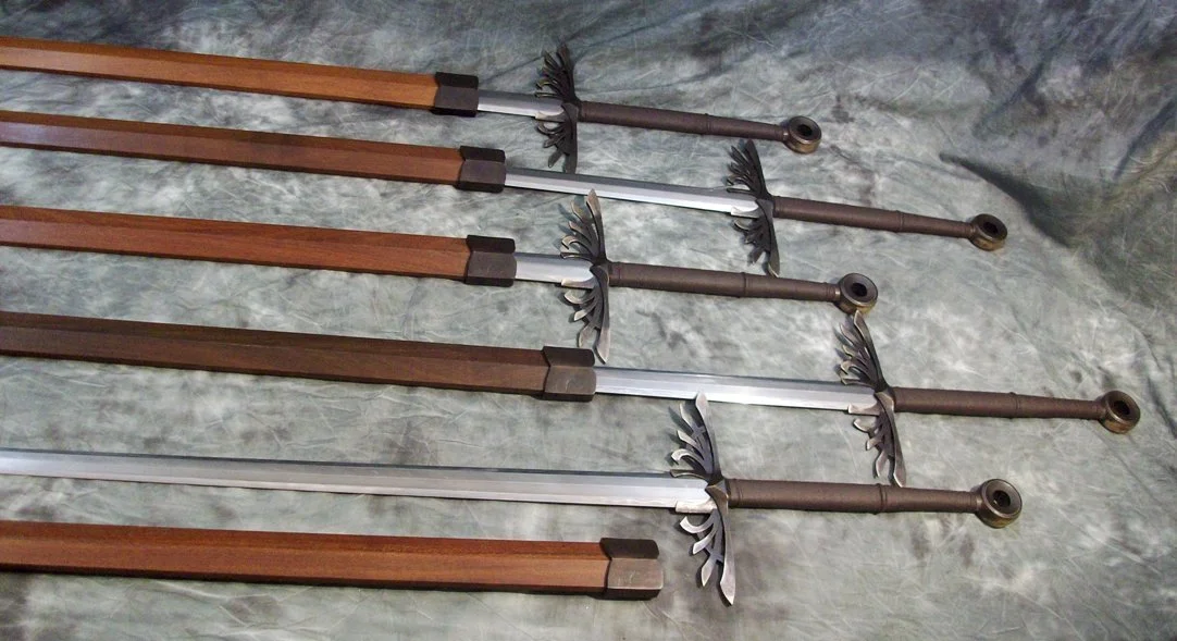 These swords were part of a collaborative project with the SBG Swordforum and Master Smith Michael Ye who forged the feathersteel blades. I designed and made the bronze hilt parts and assembled the swords. A prototype and the first five of what was to be a twenty piece run were made and sold before the project was cancelled.