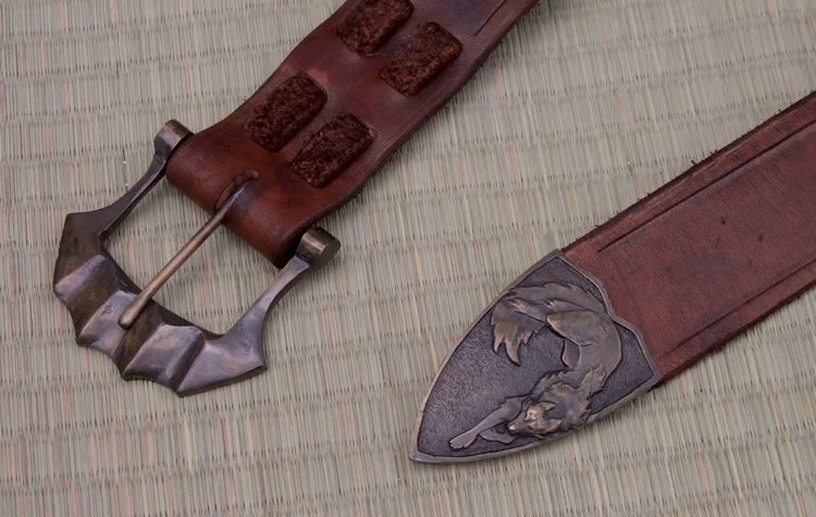 This sword is sold but a similar sword could be commissioned. Cost for the sword without the scabbard would be $3500. A custom scabbard would be $1200. Scabbard with integrated belt, bronze buckle and belt end would be $1600.