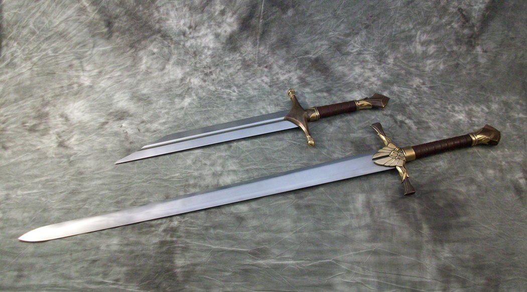 This sword set is sold but a similar pair could be commissioned. The cost for the sword set with scabbards would be $8500. The longsword by itself would be $4000 and the broken sword by itself would be $3300, with scabbards being an additional expense.