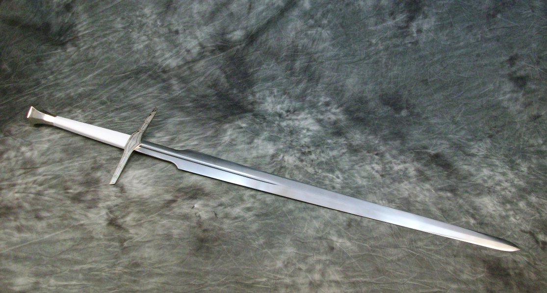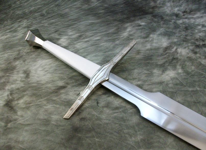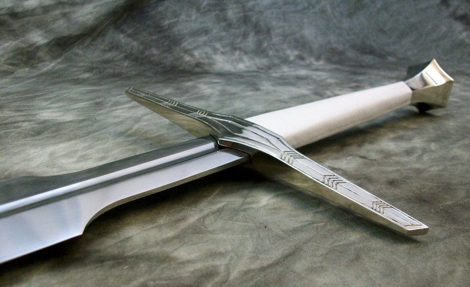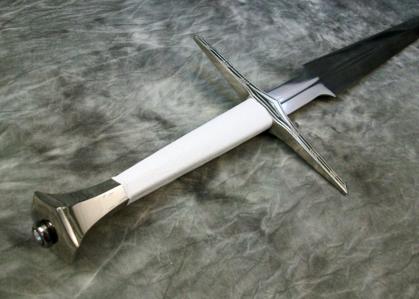 This sword is based on the silver sword from the Witcher tv series. The blade is hardened and tempered 80CrV2 steel. The guard and pommel are nickel plated bronze. The grip is a wood core with leather covering.